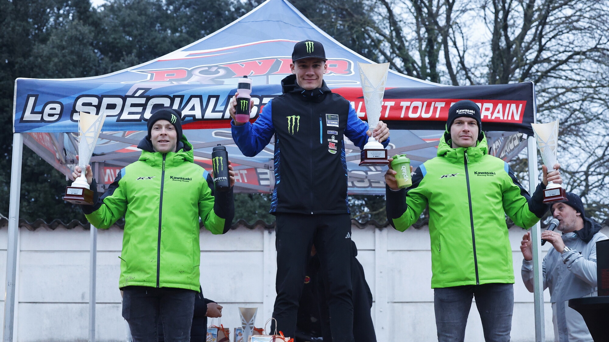 Alla fine, come sovente accade, tra i due litiganti il terzo gode, il questo caso a godere della vista dal primo gradino del podio, centrando il successo finale al termine di tre manche che hanno visto in gara piloti della MX1 e della MX2 insieme, in quella che da lontano è sembrata più una gara di paese che un vero e proprio appuntamento internazionale, è stato Maxime Renaux (Yamaha) che alla lunga ha avuto la meglio sul vincitore delle prime due manche della giornata piovosa. Febvre si è aggiudicato infatti la gara d'apertura, battendo il connazionale Renaux, con Pauls Jonass (Kawasaki) terzo, mentre per Lucas Coenen si è trattato di un avvio di giornata complicato, con un ritiro e con Mathis Valin (Kawasaki), primo dei piloti della MX2, con l’altro Coenen, Sasha, già a terra in prova al mattino e ritirato anche lui.